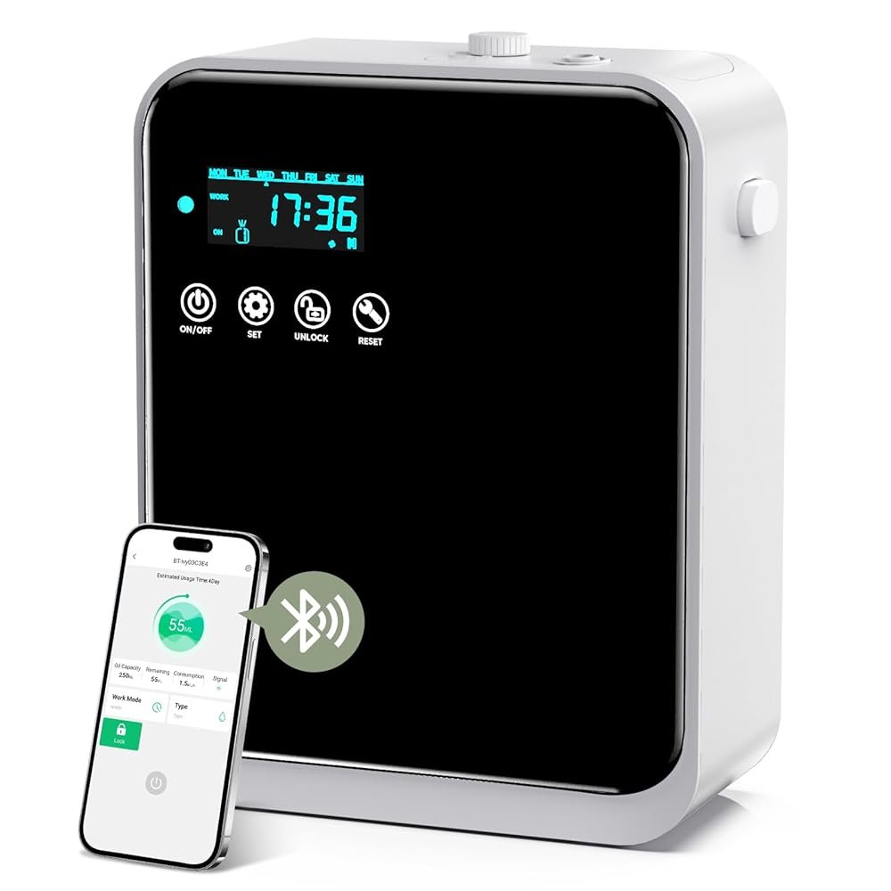 • 【Easy to use】You just need to download the app(Aroma Buddy), connect the essential oil diffuser via the app, set the working time and fragrance level. Aromatherapy Diffusers Humidifier is smarter and clearer than ordinary waterless diffusers. Everything is under your control.(Note: This diffuser doesn’t include essential oils).